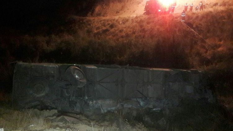 Происшествие произошло в 02.30 ночи, когда водитель автобуса потерял управление и машина сорвалась в 50-метровое ущелье.