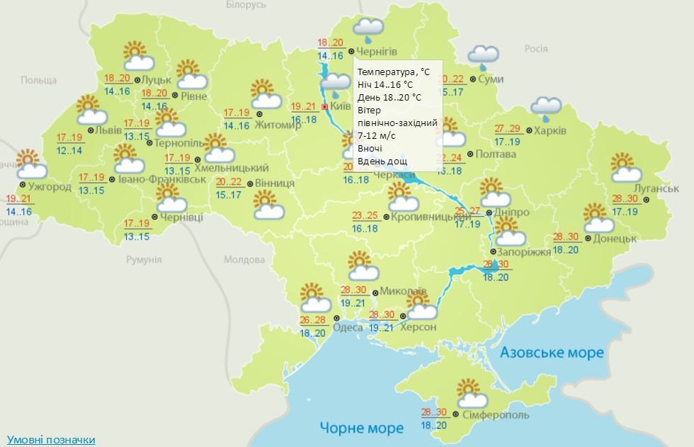 В Киеве 13 сентября будет облачная погода. Она продержится в столице до самого вечера с температура ночью +16…18, днем +19…21. В Борисполе и Белой Церкви температура днем продержится на уровне +19…21.