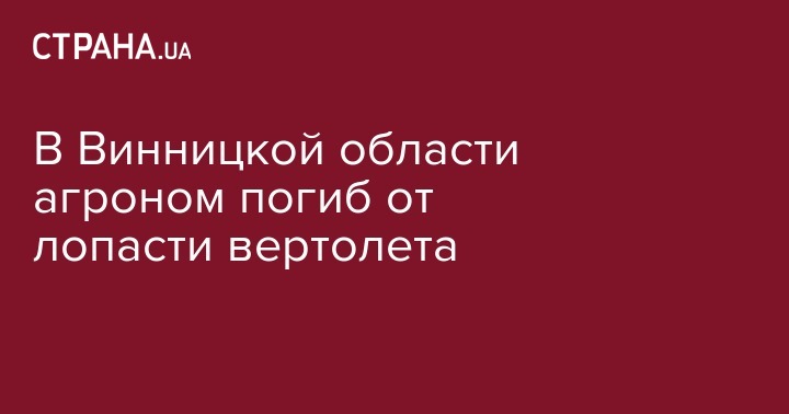 В Винницкой области 40-летний сотрудник одного из сельскохозяйственных предприятий погиб, приблизившись на опасное расстояние к вертолету и получив смертельный удар винтом. Об этом сообщили в пресс-службе ГУ Нацполиции в Винницкой области.