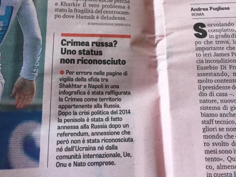 Напомним, что в Италии ведущая спортивная газета сделала Крым российским.