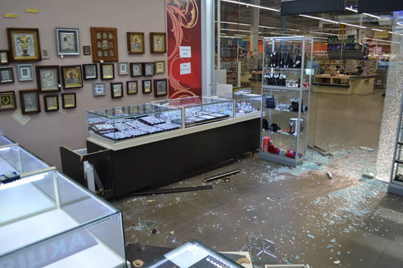 Злоумышленники проникли в ювелирный магазин, разбив стеклянные двери торгового центра. Ограбление происходило около 2.00 ночи, когда двое охранников уснули.