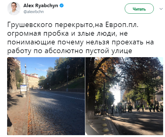 Утром 19 сентября в центре Киева образовались пробки, движение по улице Грушевского перекрыто. Об этом сообщает "Украинская правда".