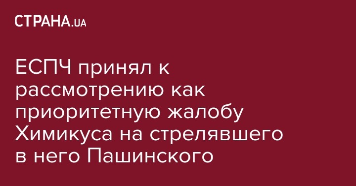 Секретариат ЕСПЧ принял к рассмотрению дело о стрельбе народного депутата Сергея Пашинского ("Народный фронт"), который ранил в ногу Вячеслава Химикуса в новогоднюю ночь в качестве дела, "которое нуждается в приоритетном рассмотрении". Об этом сообщил юрист Андрей Портнов на своей странице в Facebook.