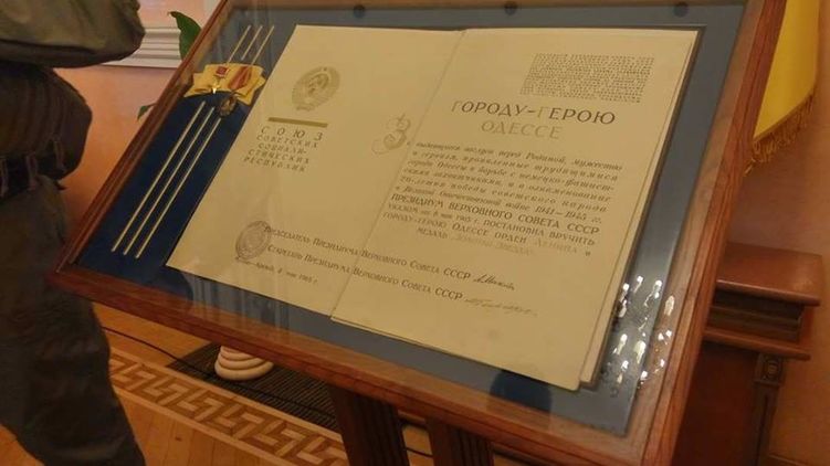 Сегодня, 20 сентября, проникшие в здание одесской мэрии активисты попытались вынести из сессионного зала орден Ленина и медаль "Золотая Звезда", врученные Одессу в честь 20-летия победы в Великой Отечественной войне. Об этом пишет Таймер.