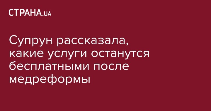 "Когда Верховная Рада проголосует за законопроекты по реформе финансирования системы здравоохранения, первичное звено услуг, когда будет подпись на декларации и врача, и пациента, будут предоставляться бесплатно", - заявила и.о. министра здравоохранения Ульяна Супрун.