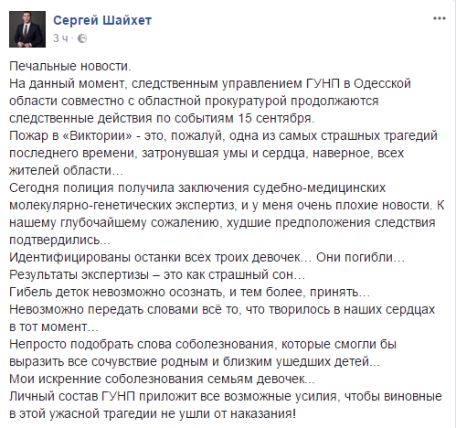Об этом на своей странице в Facebook начальник следственного управления ГУНП в Одесской области Сергей Шайхет.