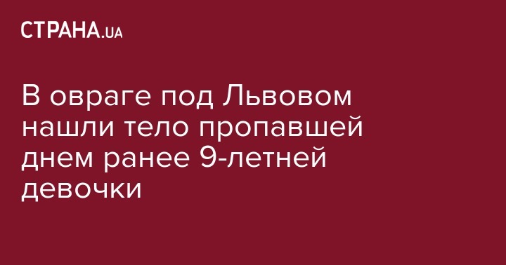 Сегодня, 24 сентября, в овраге возле села во Львовской области нашли мертвой 9-летнюю девочку, разыскиваемую со вчерашнего дня. Об этом сообщает "УНИАН".