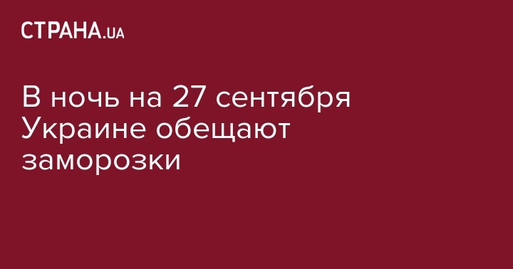 Ночью 27 сентября в восточных областях, Черниговской, Сумской и Полтавской области, а 28 сентября и в северных, центральных и Запорожской областях на поверхности почвы и местами в воздухе заморозки ожидаются заморозки 0...-4.
