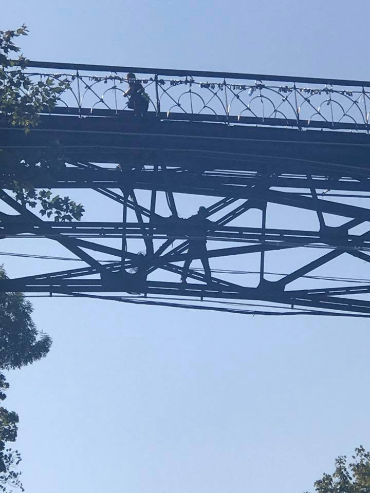 Появились фото парня, который второй час подряд грозится прыгнуть с Моста влюбленных в Киеве