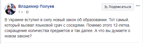 Журналист Владимир Полуев напоминает, что новый закон не только вызвал "языковой срач" с соседями, в первую очередь западными, но еще и упрощает школьную программу, делая ее при этом длиннее на год.
