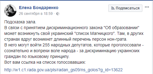 Экс-нардеп Елена Бондаренко предсказывает появление украинского "списка Магнитского" из-за нового закона.