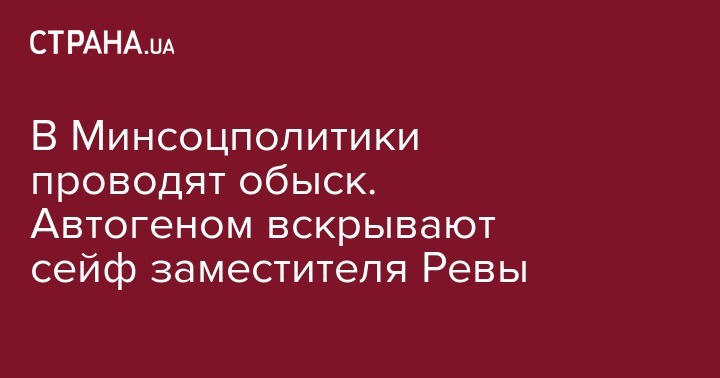 В Минсоцполитики проводят обыск. Автогеном вскрывают сейф заместителя Ревы