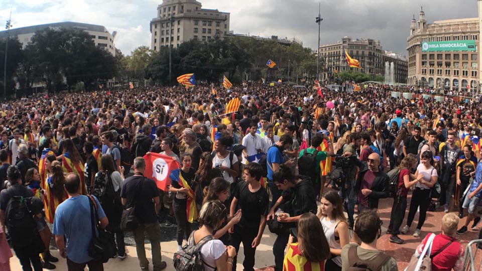 15:00  На площади Каталония проходит многотысячная акция протеста местных студентов. Его организовала платформа "Университеты для республики". Митингующие выражают протест против жестокого разгона сторонников референдума, который вчера устроила Национальная полиция и Гражданская гвардия.