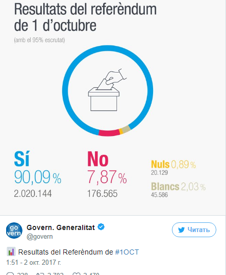 Пучдемон также объявил состоявшимся референдум и заявил, что Каталония завоевала право на независимость.