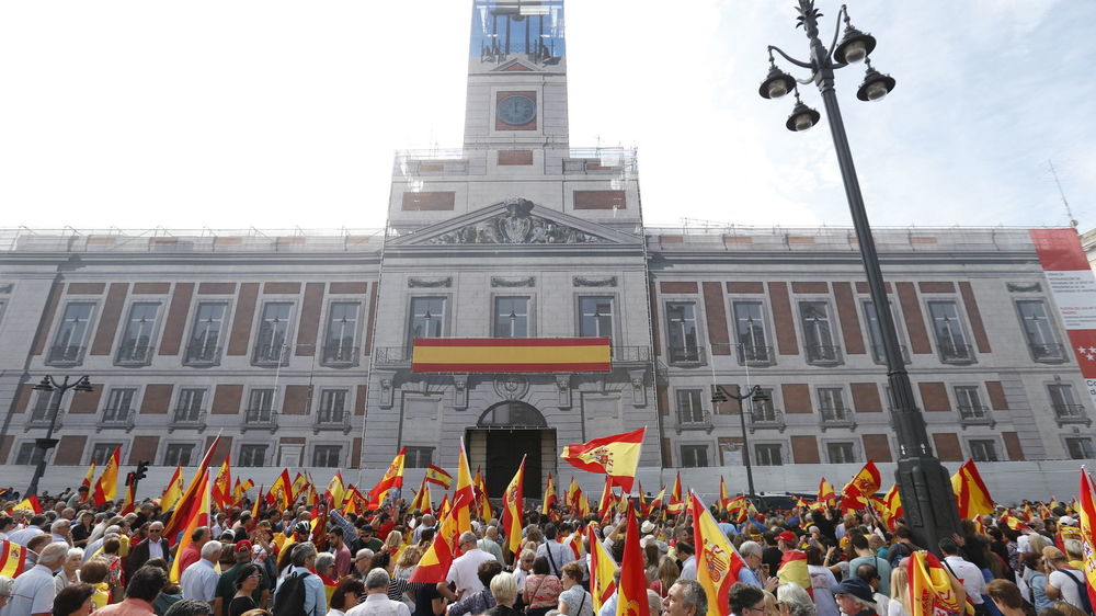15:17  В Мадриде несколько сотен сторонников единой Испании вышли на митинг, передает издание El Espanol.