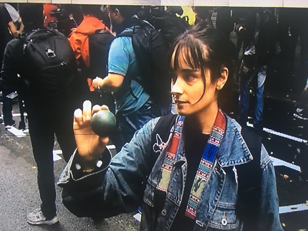12:50  Вот такими резиновыми шарами полиция стреляет по барселонцам.