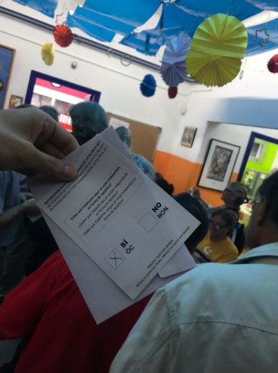14:26  Выборы идут. На бюллетенях варианты для голосования написаны на испанском и каталонском. Свежая подборка фотографий от "Страны".