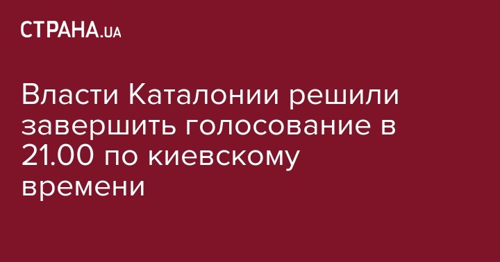 В Каталонии приняли решение завершить процесс голосования на референдуме о независимости региона от Испании к 20:00 по местному времени (в 21.00 по Киеву). Об этом сообщает "Интерфакс-Украина" со ссылкой на испанскую газету Еl Pais.