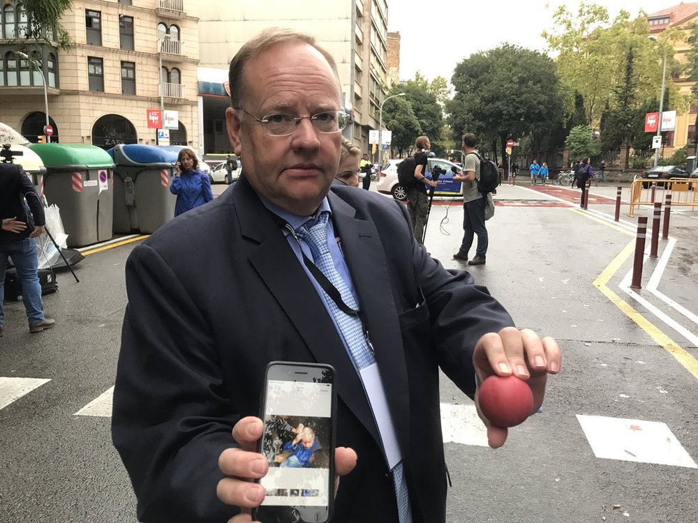 Когда справиться с толпой дубинками не удалось, в ход пошли резиновые пули. Одну из них в Барселоне нашел наблюдатель от Британии - член Палаты лордов Крис Реннард.