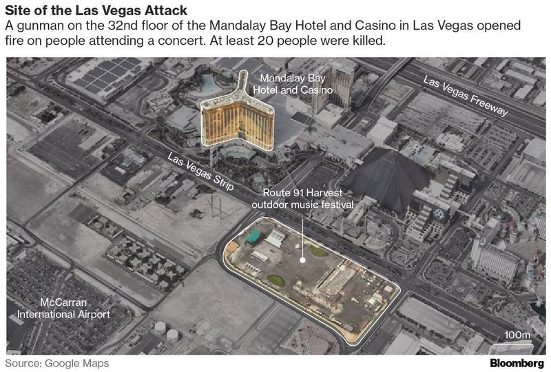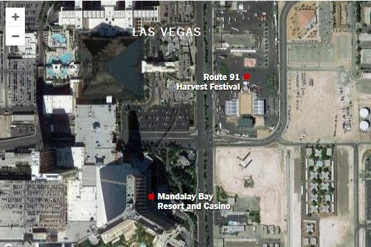 На карте видно, откуда стрелял Пэддок по зрителям концерта.