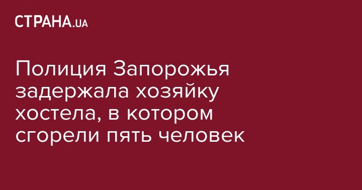 В Запорожье задержана хозяйка хостела, при пожаре в котором погибли пять жильцов, сообщил начальник Главного управления Национальной полиции Украины в Запорожской области Олег Золотоноша.