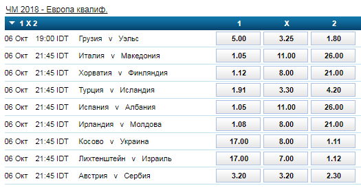 Ставки на матчи предпоследнего тура отбора на ЧМ-2018