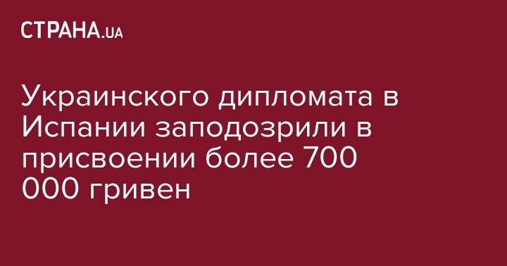 Украинского дипломата в Испании заподозрили в присвоении более 700 000 гривен