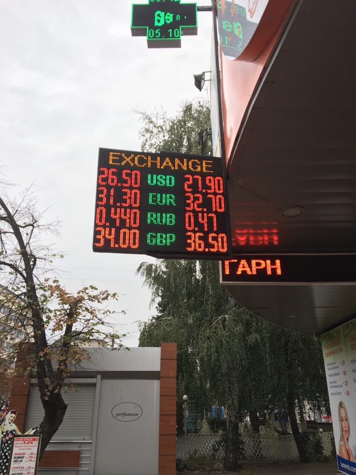 В киевских обменниках в четверг, 5 октября, резко вырос курс евро. Средний курс покупки вырос сразу на 0,46 коп. до 31,3455 UAH/EUR, а в некоторых обменниках "Страна" увидела даже невероятные 32,70 гривен за евро в продаже.
