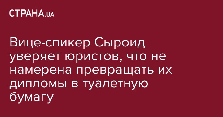 Вице-спикер Сыроид уверяет юристов, что не намерена превращать их дипломы в туалетную бумагу