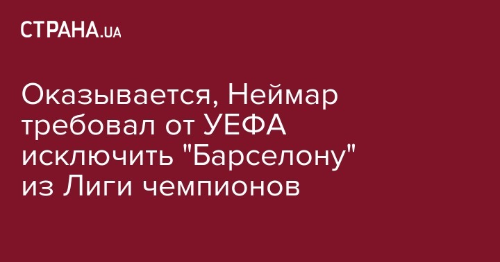 оказывается, Неймар обращался с жалобой в Союз европейских футбольных ассоциаций (УЕФА), чтобы добиться отстранения своего бывшего клуба "Барселона" от участия в Лиге чемпионов.