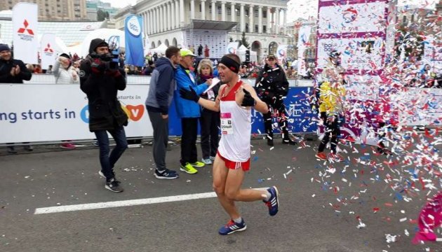 Победитель Марафона Артем Поддубный на финише, фото: ukrinform.ua
