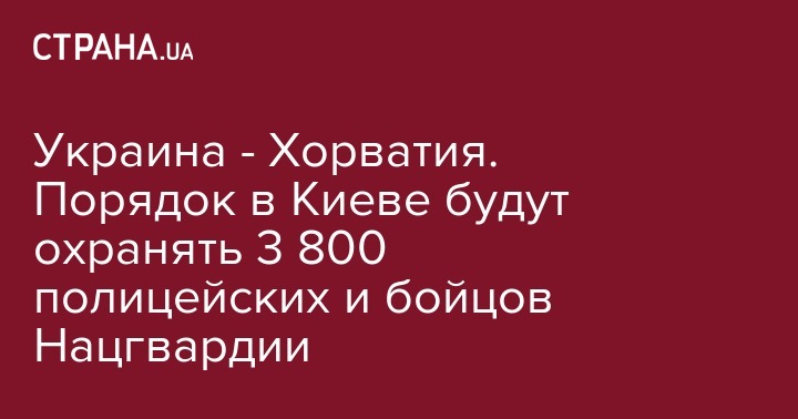 Во время футбольного матча Украина - Хорватия за порядком в столице будут следить около 3 800 правоохранителей. Об этом говорится в сообщении полиции Киева.