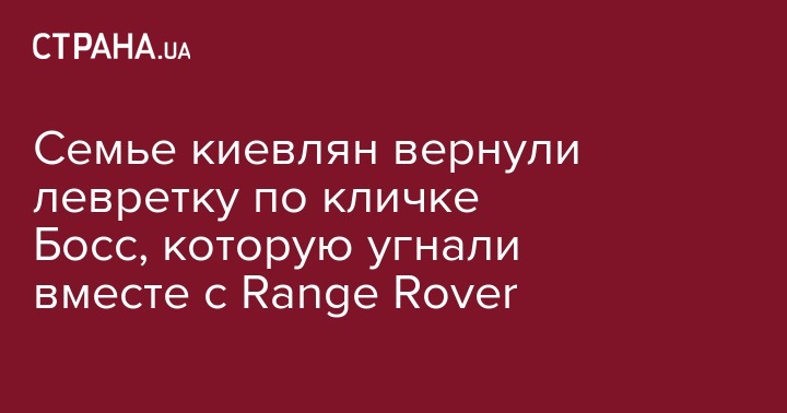 Собака редкой породы вернулась к хозяевам, у которых угнали автомобиль в центре Киева. После широкой огласки в Интернете хозяевам собаки позвонили и отправили левретку по кличке Босс на такси, отказавшись от вознаграждения. Об этом сообщает ТСН.