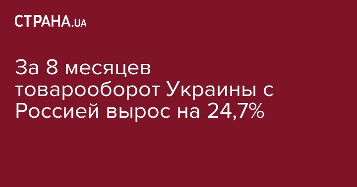 За 8 месяцев товарооборот Украины с Россией вырос на 24,7%