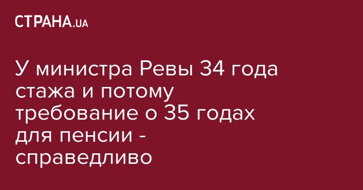 Министр соцполитики Андрей Рева заявил о "справедливости" требований вступившего к силу закона о пенсионной реформе к страховому стажу для начисления пенсий. "Справедливость" этих норм министр Рева обосновал тем, что у него самого уже более 34 лет стажа. Об этом он сообщил журналистам, передает УНИАН.