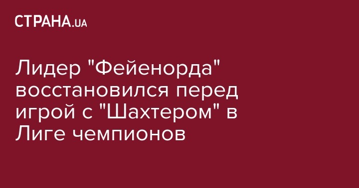 Лидер "Фейенорда" восстановился перед игрой с "Шахтером" в Лиге чемпионов