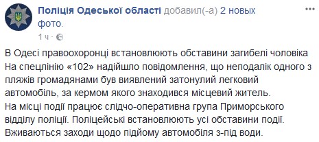 Затонувший автомобиль обнаружили сегодня возле причала Черноморского яхт-клуба в Отраде. Об этом сообщает ГУ НП в Одесской области на своей странице в Facebook.