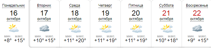 Все ресурсы обещают потепление до +18...+21 со среды. Киев ждет преимущественно солнечная погода. На выходных температура немного снизится: в воскресенье возможно +11...+15. Один из пяти ресурсов не исключает дождь 22 октября.