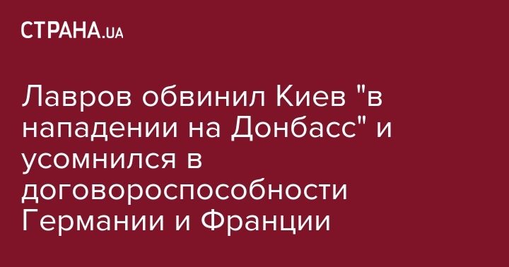 Министр иностранных дел России Сергей Лавров обвинил Украину "в нападении на Донбасс" и поставил под вопрос договороспособность руководства Франции и Германии.