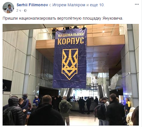На фотографиях, обнародованных националистами, видно, что они развернули один из своих баннеров внутри здания.