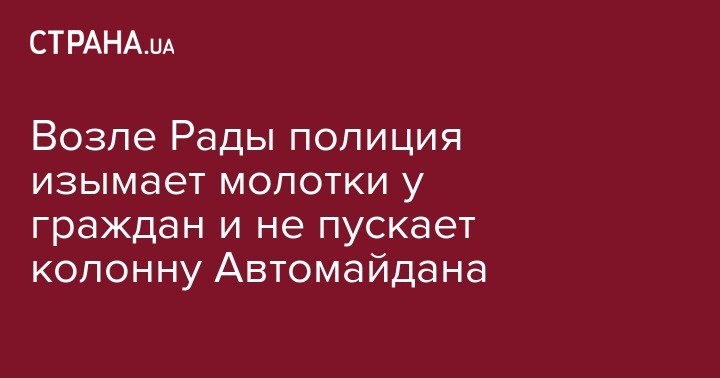 Возле Рады полиция изымает молотки у граждан и не пускает колонну Автомайдана