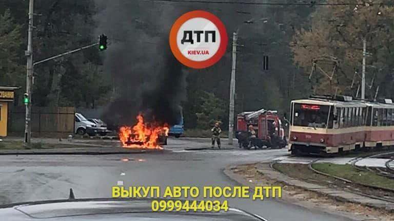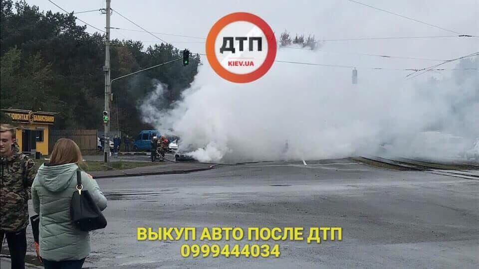 В Киеве на перекрестке улиц Миропольской и Алишера Новои прямо во время движения загорелся автомобиль Daewoo. Об этом сообщает в Facebook dtp.kiev.ua.