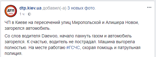 В Киеве на ходу вспыхнула и полностью сгорела Daewoo