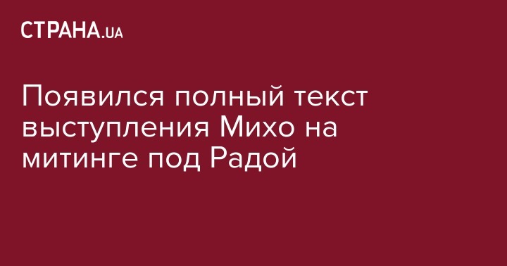 Михаил Саакашвили уже выступил в статусе главной звезды сегодняшнего митинга под стенами Верховной Рады, который прозвали МихоМайдан. Мы уже сообщали коротко, что Саакашвили призвал к отставке Порошенко, а теперь "Страна" публикует полную расшифровку его выступления.