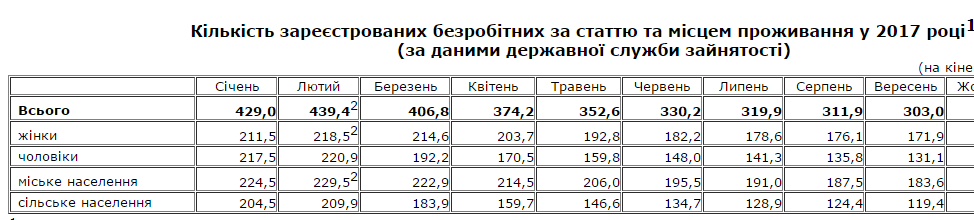 Так, согласно информации, по состоянию на 1 октября 2017 года в Украине зарегистрированы 303 тыс. безработных. При этом, в августе безработными считались 311,9 тыс. человек.