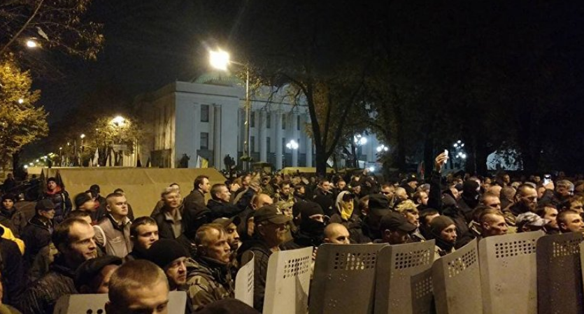 Последние столкновения между участниками акции протеста и правоохранителями произошли вечером 17 октября из-за попытки оттеснить митингующих от забора по периметру парламента, сообщают РИА Новости.
