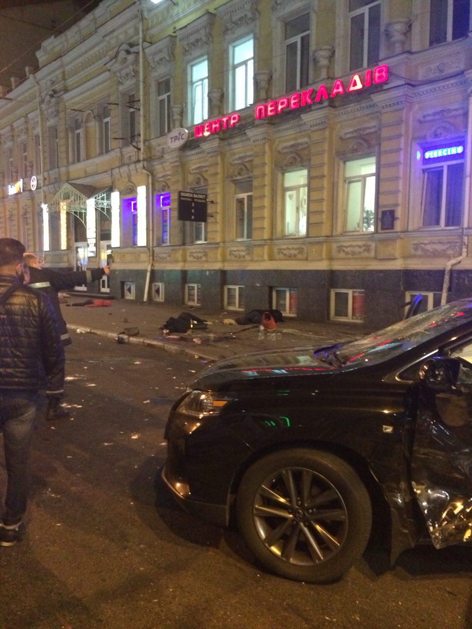 "В результате столкновения Lexus вылетел на тротуар ул.Сумская и совершил наезд на 11 пешеходов, 5 из которых погибли на месте (4 девушки и молодой парень), остальные были доставлены в медучреждения", - говорится в заявлении силовиков.