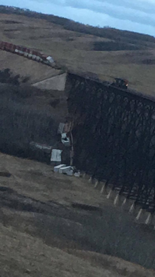 Во время другой аварии, случившейся в 200 км к востоку от столицы провинции города Эдмонтон, пять вагонов сорвались с обрыва и пролетев несколько десятков метров, рухнули на дна ущелья.