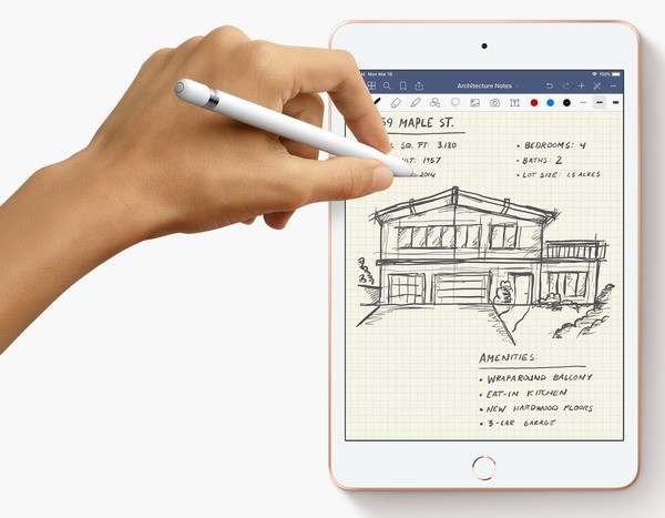 Версия mini будет иметь экран размером 7,9 дюйма. Она оснащена однокристальной системой Apple A12 Bionic. Экран имеет разрешение 2048 х 1536 пикселей и поддерживает True Tone. У модели есть поддержка стилуса Pencil. В планшете есть две камеры (основная и фронтальная) разрешением 8 и 7 Мп.