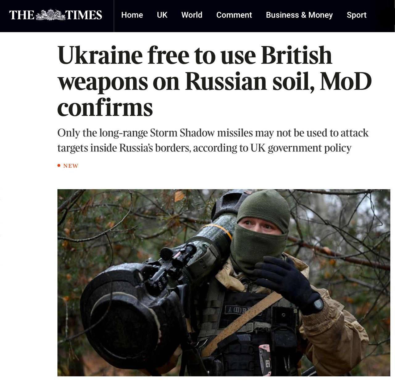 Британия подтвердила, что Украина может использовать британское оружие на территории России кроме дальнобойных ракет.